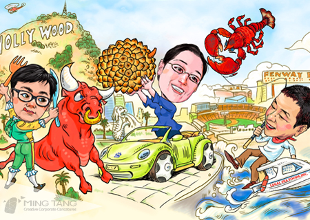Baidu was founded in 2000 by Internet pioneer Robin Li, creator of visionary search technology Hyperlink Analysis, with the mission of providing people with the best way to find information and connect users with services. The photo£§s them is £¢we cracked the toughest thing around the word£¢. We can see a member is catching lobster, one is showing bullfight, and the other is driving beetle and holding a durian.