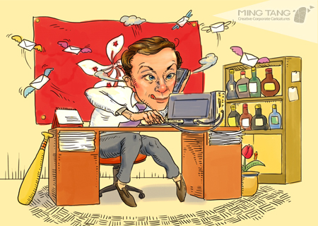 Dan is working hard in very busy atmosphere. Sitting in front of an office computer, emails are flying and phone is ring continuously